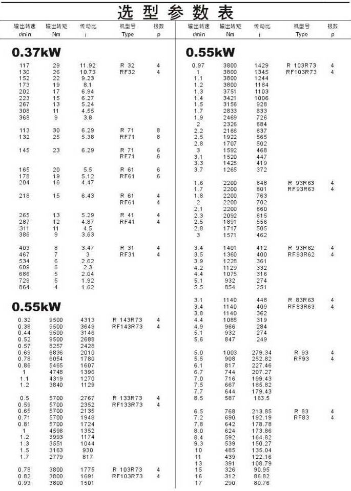 選型參數表0.37kW(續),0.55kW