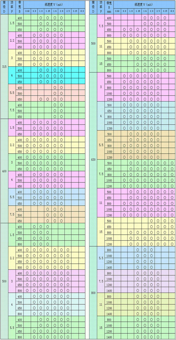 WD 型外裝式電動滾筒系列參數表: